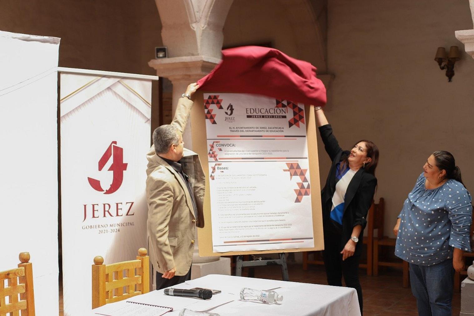 JEREZ, ZAC.- El presidente municipal José Humberto Salazar Contreras realizó la presentación de la convocatoria para Becas de Transporte, con lo que el Ayuntamiento 2021-2024 pretende apoyar a 700 estudiantes que acuden diariamente a la ciudad de Zacatecas a recibir su instrucción académica en el nivel de licenciatura.