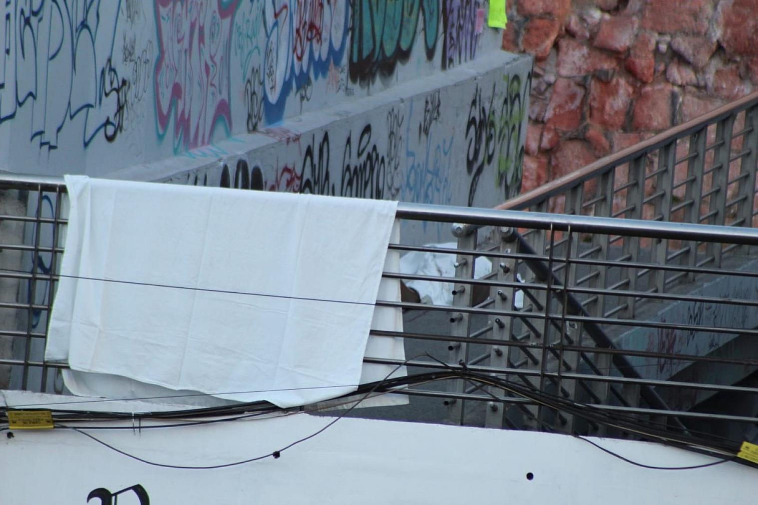 El cuerpo fue cubierto con una sábana blanca una vez que los cuerpos de socorro confirmaron que la víctima ya no tenía signos vitales.