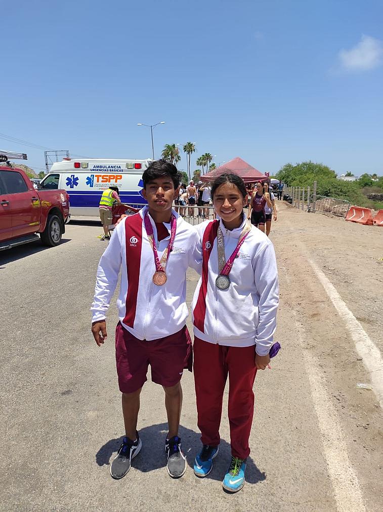 ZACATECAS, ZAC.- El binomio atleta-entrenador, conformado por Mariana Geraldine Pérez Rodríguez y Pedro Saucedo, así como Irving Saldaña Macías y Felipe de Jesús Pacheco Mercado, otorgó a Zacatecas medalla de plata y bronce, respectivamente, en los Juegos Nacionales Conade, que se desarrollan en Guaymas, Sonora.