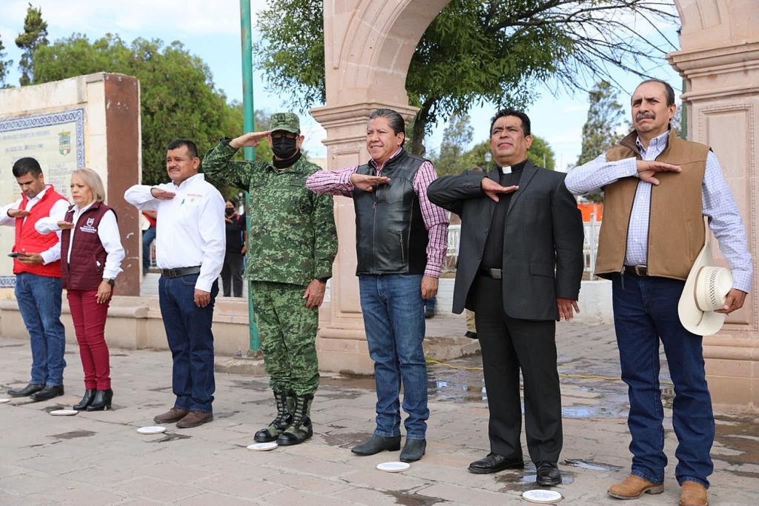 CAÑITAS DE FELIPE PESCADOR, ZAC.- Desde que asumí el mandato constitucional que me confirió el pueblo, en la administración pública trabajamos para encauzar a Zacatecas por el sendero del bienestar y del desarrollo, manifestó el gobernador David Monreal Ávila al encabezar la ceremonia de honores a la bandera en Cañitas de Felipe Pescador.