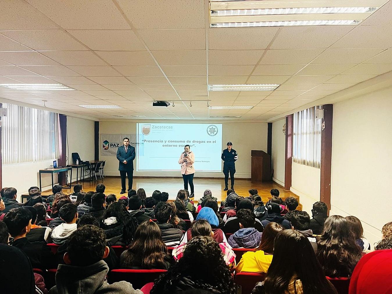 ZACATECAS, ZAC.- Con el objetivo de prevenir el consumo de sustancias ilícitas en niñas, niños, adolescentes y jóvenes zacatecanos, la Secretaría de Seguridad Pública (SSP), a través de la División Científica de la Policía Estatal Preventiva y de la Dirección de Orientación y Vinculación Ciudadana, impartió en instituciones educativas de Guadalupe y Río Grande el taller de “Prevención de adicciones”.