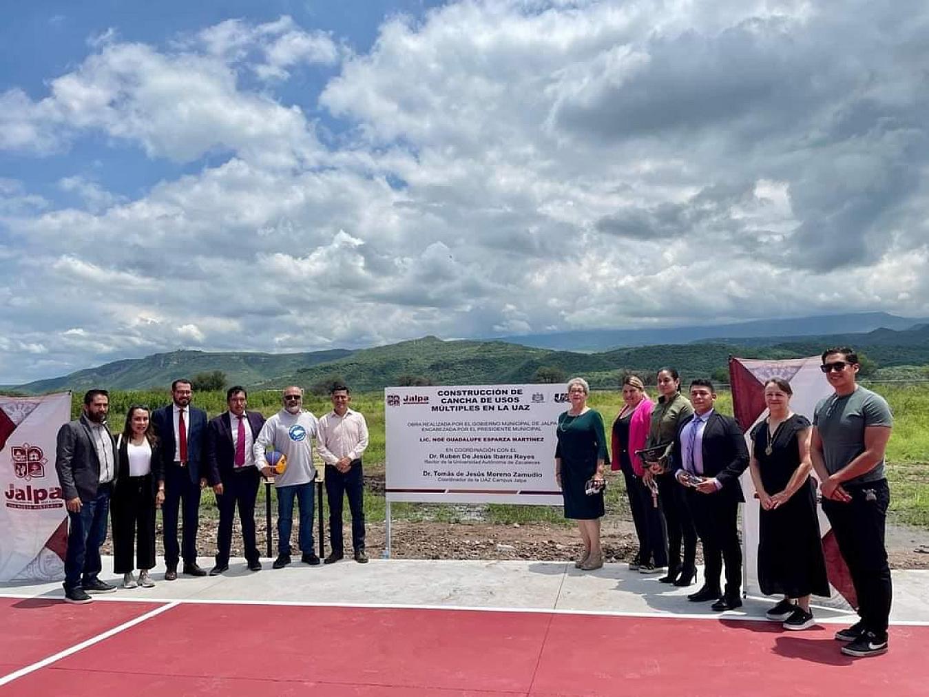 ZACATECAS, ZAC.- En el marco del XXIV Aniversario del Campus Jalpa de la UAZ se llevó a cabo un evento conmemorativo en el que se inauguró la cancha de usos múltiples, se presentaron los equipos deportivos de este campus, y se tomó protesta a la sociedad de alumnos, encabezada por la estudiante Viviana Andrade Estrada ante la presencia del presidente municipal de Jalpa, Noé Esparza Martínez.