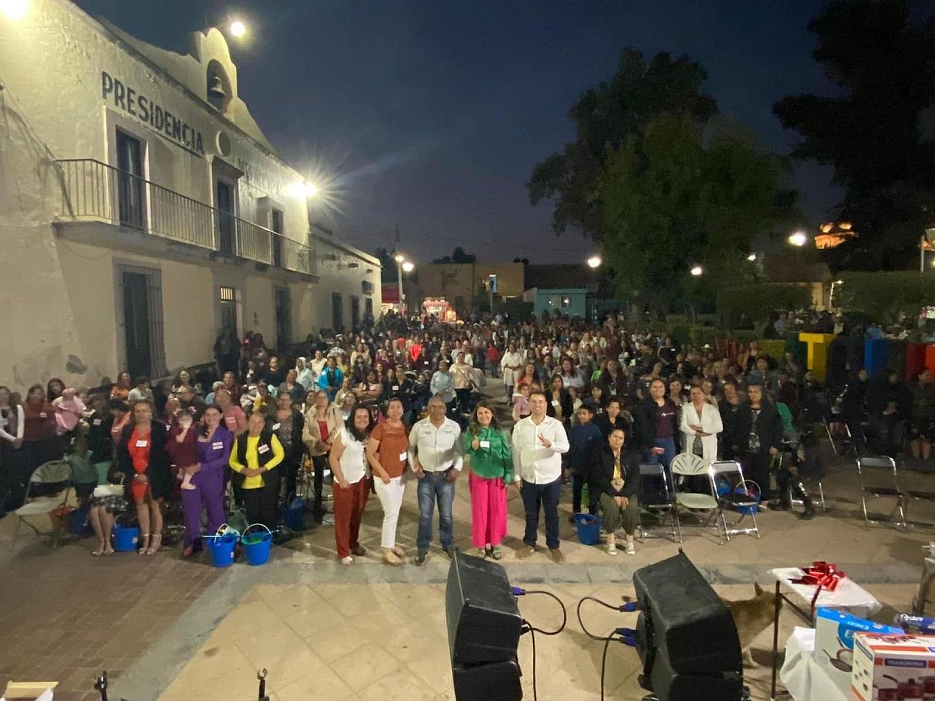 Acompañando a la presidente municipal, Rosaura Sánchez y funcionarios locales, el político sorteó una serie de artículos para el hogar y vales de comida a las festejadas.