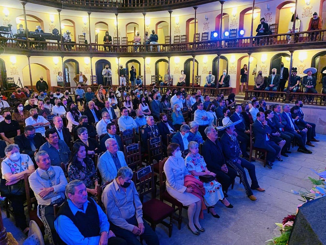 JEREZ, ZAC.- En la conmemoración de los 450 años del poblamiento definitivo de Jerez y su fundación, este día se desarrolló la Sesión Solemne de Cabildo, en que la que se realizó la declaratoria mediante Bando Solemne y se entregaron medallas conmemorativas a 45 jerezanas y jerezanos distinguidos que han formado parte de la historia de este pueblo mágico, evento que congregó a diversos sectores de la sociedad jerezana.