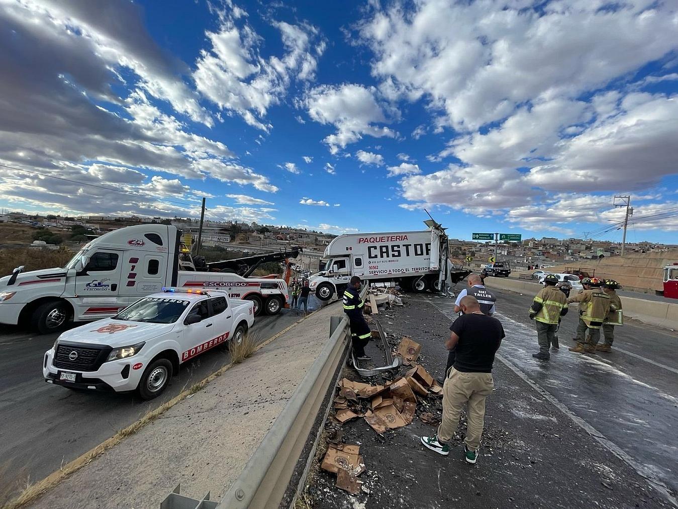 ZACATECAS, ZAC.- La tarde de este miércoles, un camión que transportaba cerveza y un tráiler de carga de la empresa Castores chocaron en el libramiento de Tránsito Pesado, en dirección de Zacatecas a Guadalupe.