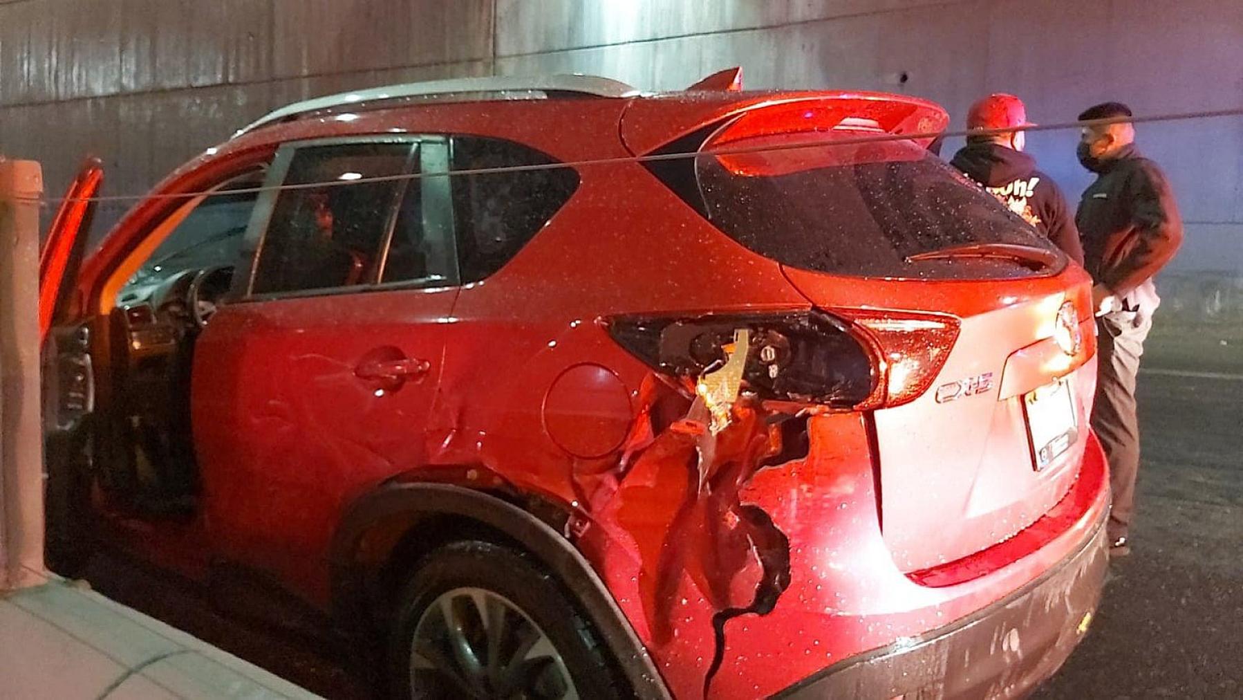 Al arribar al lugar fue localizado un vehículo tipo Crossover de la marca Mazda tipo CX-5 de color guinda, con placas de circulación del estado de Zacatecas.