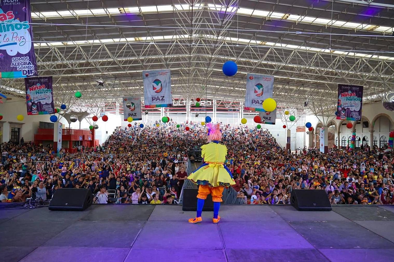 ZACATECAS, ZAC .- Entre risas, bailes, juegos y muchas de emociones, miles de infantes zacatecanos disfrutaron el Festival Niñas y Niños por la Paz, donde la música y los colores se apoderaron del domo de las instalaciones de la Feria, con la presentación del show infantil de Bely y Beto.