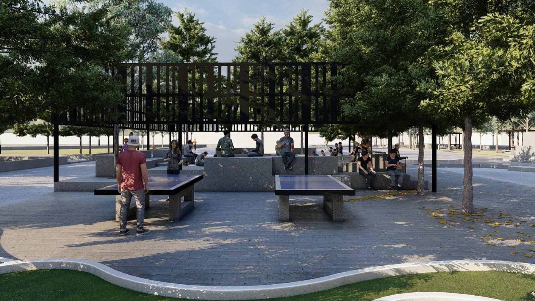 Además del mini golf, se habilitará un área de ping pong. Este deporte de raqueta se jugará en tres mesas construidas de acero y concreto, divididas por una malla de acero. El área de ping pong ofrecerá otra opción de entretenimiento familiar.