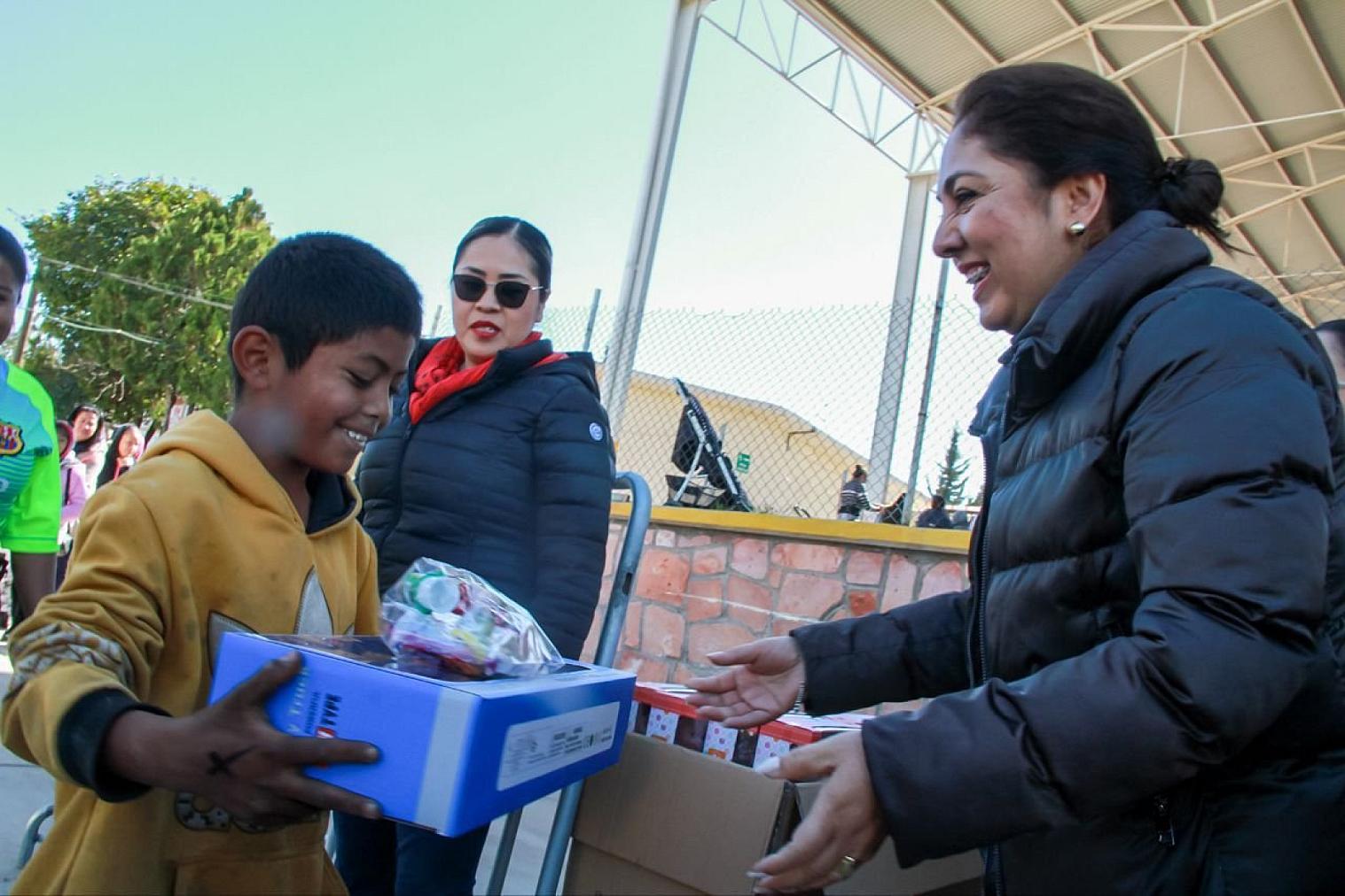 Adultos mayores, personas con discapacidad, madres jefas de familia, así como niñas y niños, acudieron a recibir, de manos de Sara Hernández, cientos de cobijas, paquetes alimentarios, bolos y juguetes.