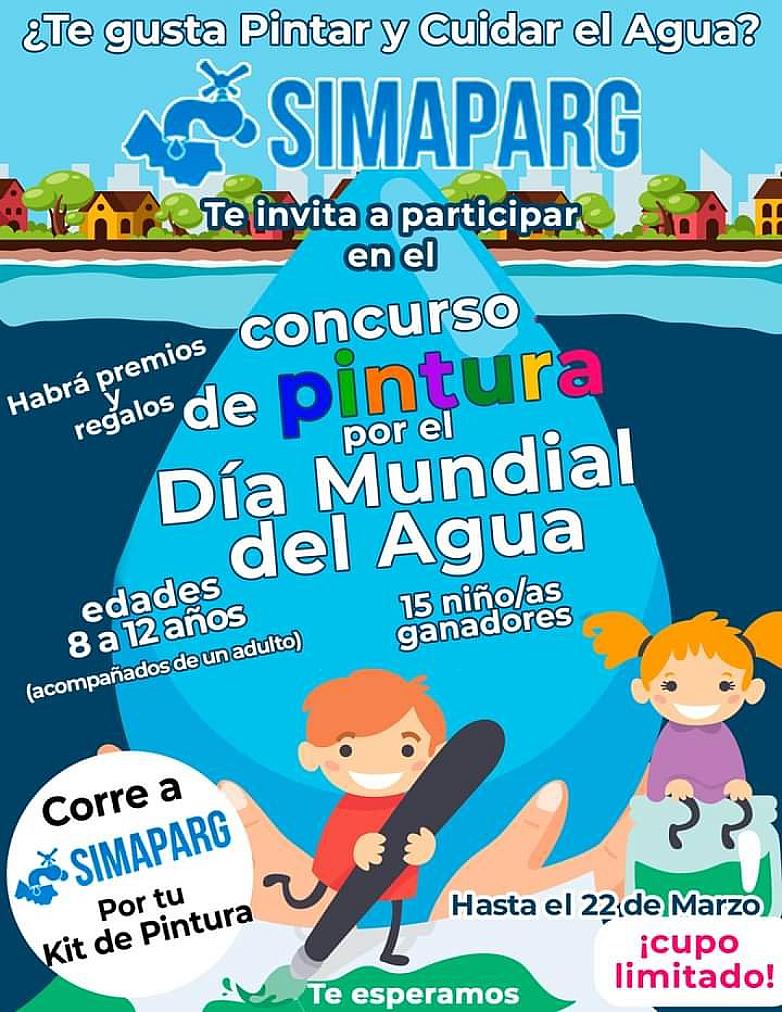 RÍO GRANDE, ZAC.- Si te gusta pintar y al mismo tiempo cuidar el medio ambiente, el Sistema Municipal de Agua Potable y Alcantarillado de Río Grande (Simaparg), invita a todos los niños de 8 a 10 años de edad a participar en el Concurso de Pintura por el Día Mundial del Agua, quien a partir de este día y hasta el 22 de marzo podrán inscribirse al mismo.