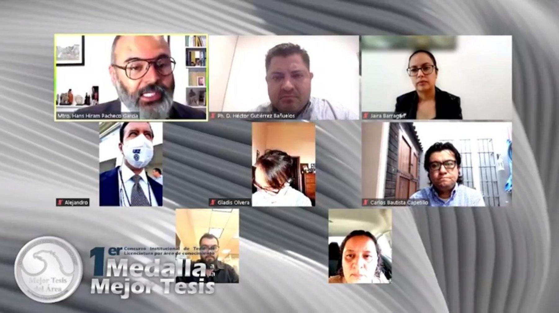 ZACATECAS, ZAC.- De manera virtual se desarrolló la presentación de los ganadores del “1er Concurso Institucional de Tesis de Licenciatura por Área de Conocimiento: Medalla a la Mejor Tesis 2021”, organizado por la Secretaría Académica de la Universidad Autónoma de Zacatecas (UAZ), evento en el que se reconoció al estudiantado con las mejores tesis de licenciatura de las siete áreas que conforman a la institución.