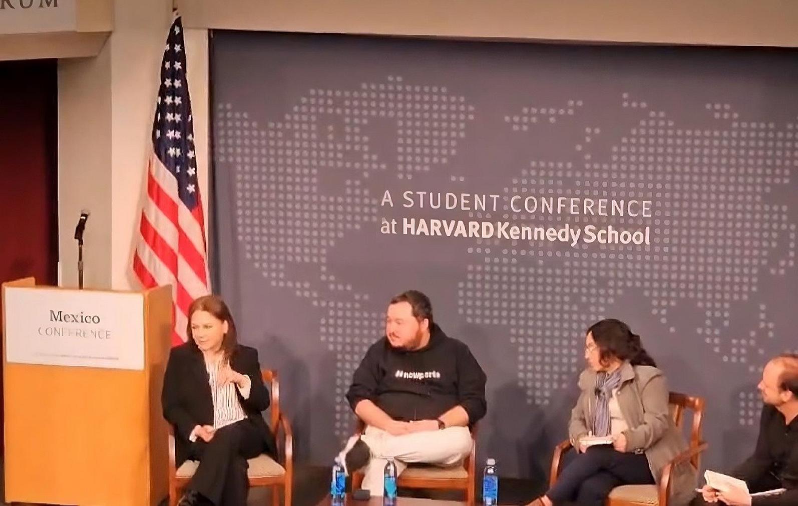 Finalmente agradeció la invitación para estar en una de las universidades más prestigiadas del mundo en el panel organizado por la Asociación de Estudiantes Universitarios de Harvard (HUMAS, por sus siglas en inglés) y en el que también participaron Alejandra González, consejera de Innovación Gubernamental Monterrey y Ricardo Alanis, director de Data en Nowports AI.