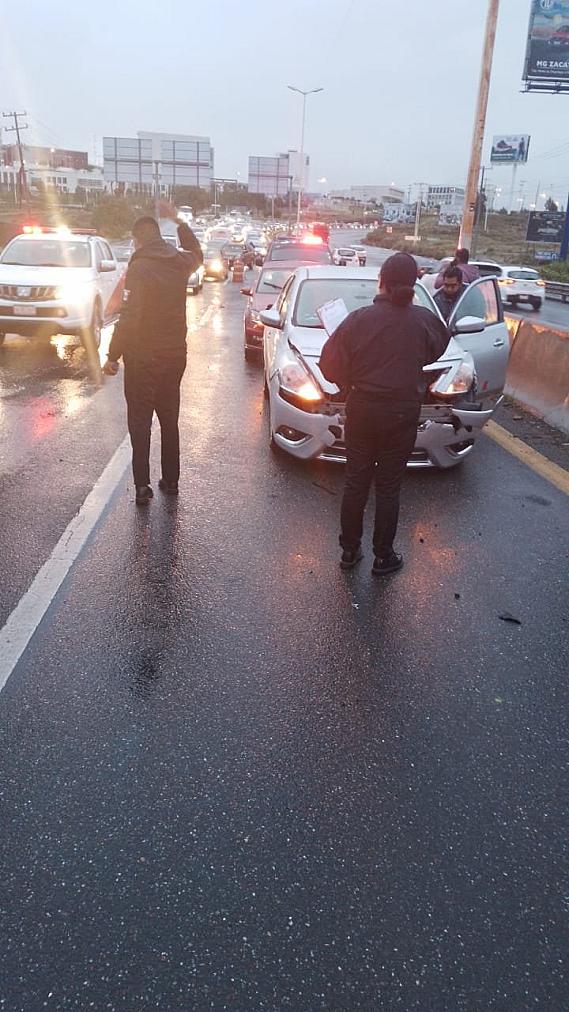 ZACATECAS, ZAC.- Dos mujeres jóvenes menores de 20 años resultaron lesionadas en un accidente múltiple registrado en las inmediaciones del crucero a la carretera federal 54, a la altura de La Escondida. Dulce María, de 20 años, sufrió un golpe en la nariz, mientras que Ailyn, de 17, uno en la frente.