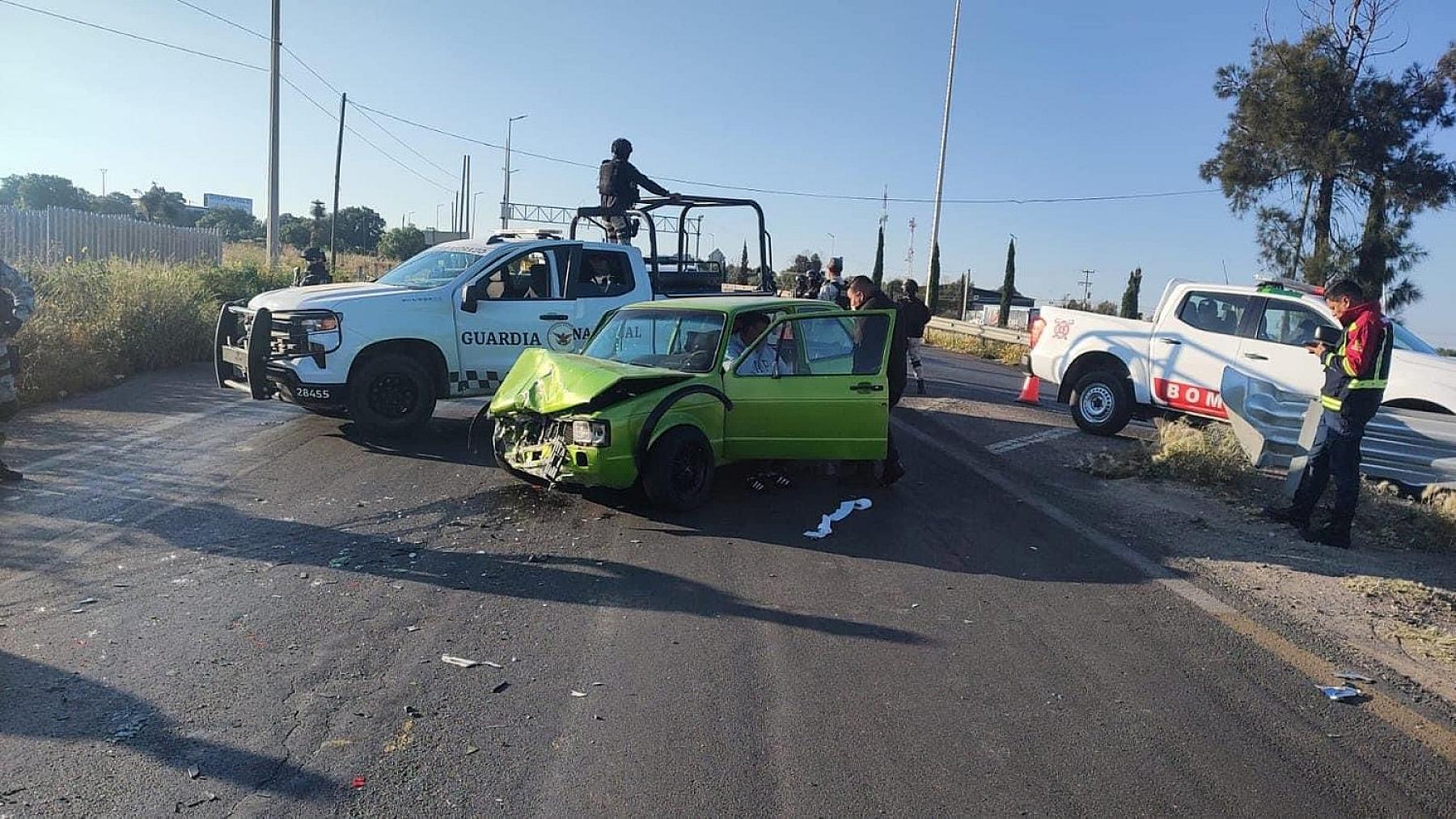 El siniestro se originó cuando un Volkswagen, Caribe, color verde, en el que viajaban las personas lesionadas, presuntamente policías municipales de Calera que iban a cumplir con sus obligaciones, impactaron a velocidad inmoderada a un Nissan, Sentra, color negro que a su vez fue proyectado contra un Honda, Fit, blanco que terminó afuera de la carpeta asfáltica.