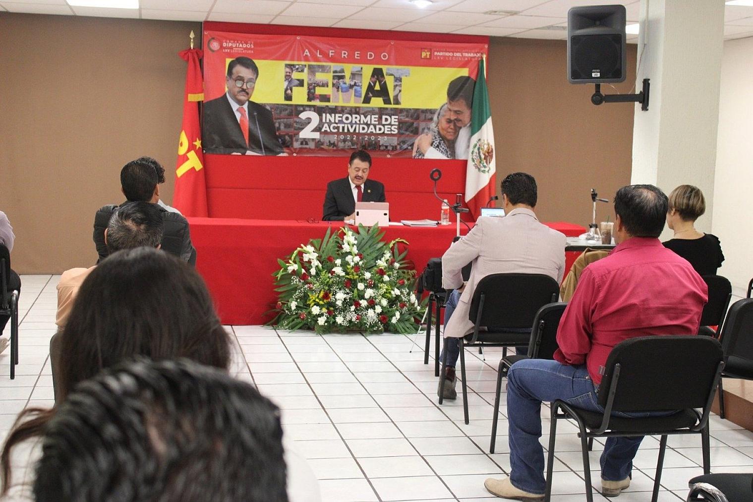 ZACATECAS, ZAC.- Con el objetivo de mantener informados a los zacatecanos de su quehacer parlamentario y territorial, este viernes, el diputado Alfredo Femat Bañuelos rindió su segundo informe de actividades como integrante de la LXV Legislatura Federal, correspondiente al periodo 2022-2023.