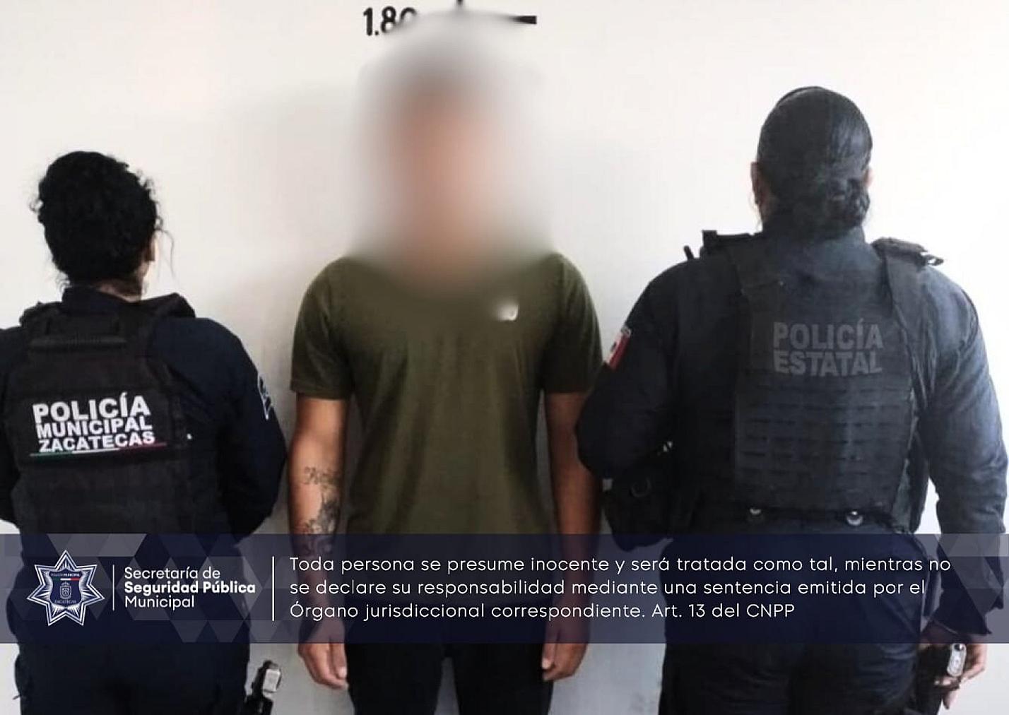 ZACATECAS, ZAC.- Elementos de la unidad Mujer Segura de la Policía Municipal de la capital, en coordinación con la Policía Estatal Preventiva (PEP), detuvieron a un hombre de 28 años, en la colonia El Orito, por la presunta comisión del delito de violencia familiar.