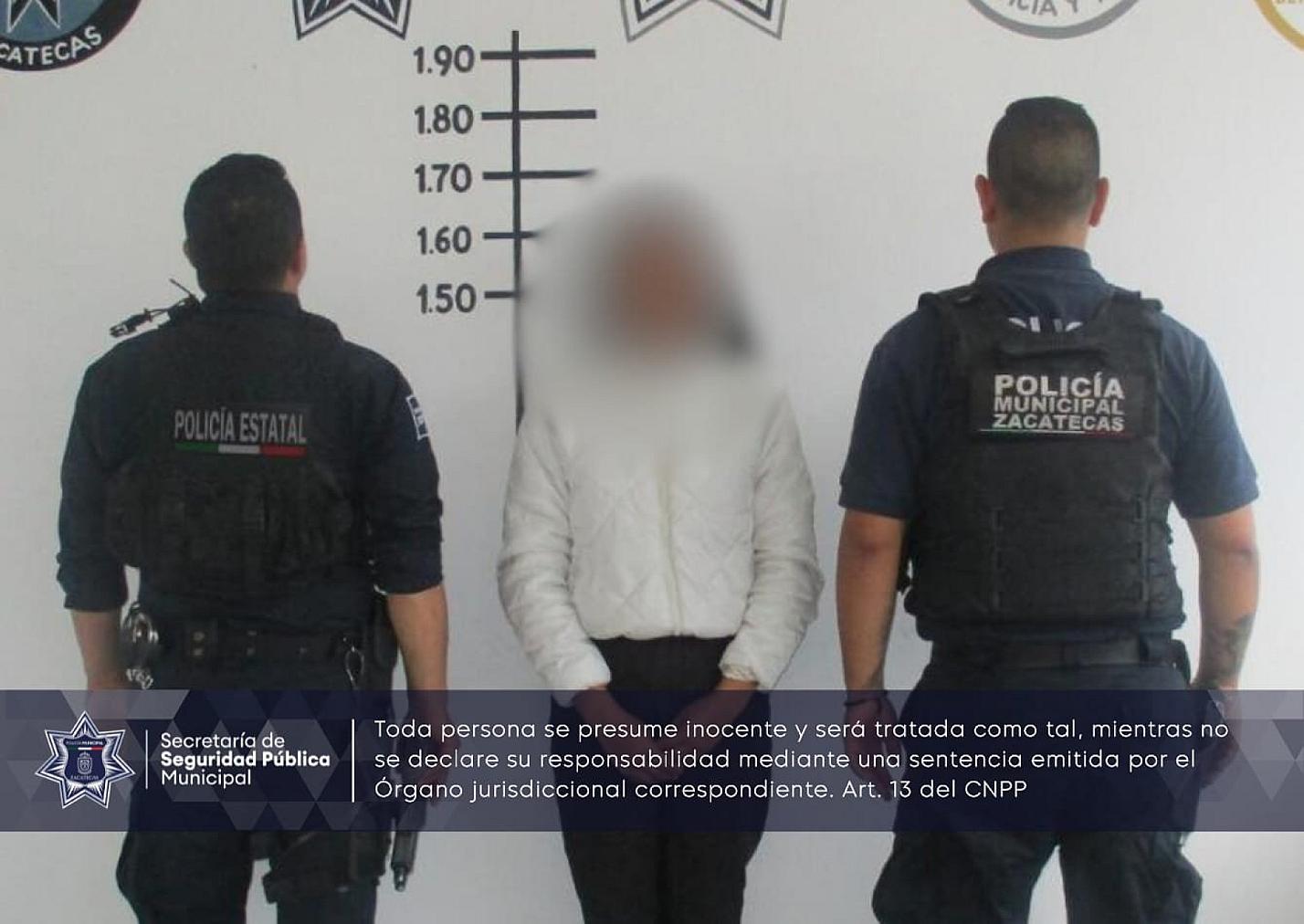 ZACATECAS, ZAC.- Elementos de la Policía Municipal de Zacatecas, en coordinación con la Policía Estatal Preventiva (PEP), detuvieron a una mujer de 24 años por la presunta comisión del delito de robo a comercio.