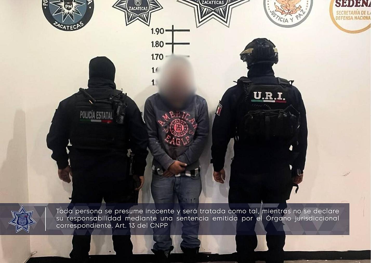 ZACATECAS, ZAC.- Elementos de la Policía Municipal detuvieron a un hombre de 22 años, quien presuntamente se dedicaba a robar establecimientos comerciales con lujo de violencia.
