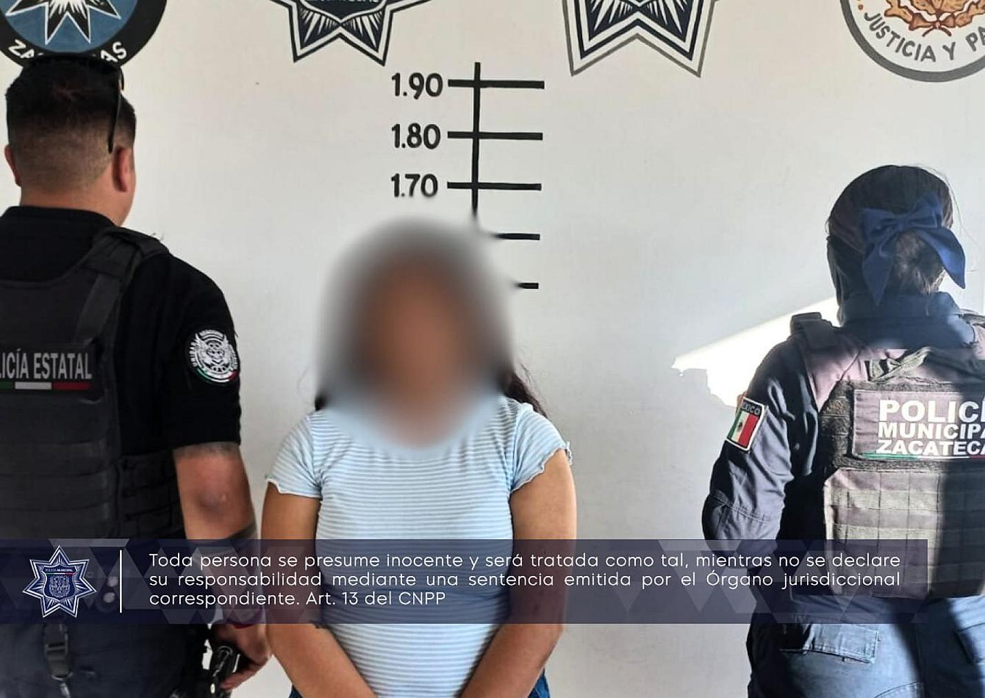 ZACATECAS, ZAC.- Elementos de la Policía Municipal detuvieron a una mujer de 23 años en la colonia Tres Cruces por el robo a un comercio.