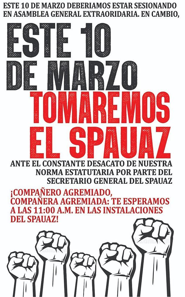 EMPLAZAN AGREMIADOS TOMA DEL SPAUAZ, EXIGEN RENUNCIA DIRECTA DEL SECRETARIO GENERAL