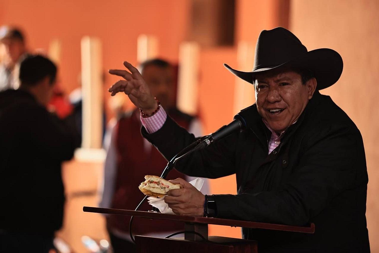 En el evento, donde se entregaron apoyos invernales, juguetes y bolos, el mandatario estatal celebró el Día de Reyes con una rosca que compartió con la gente de la población, y en su rebanada salió el Niño Dios.