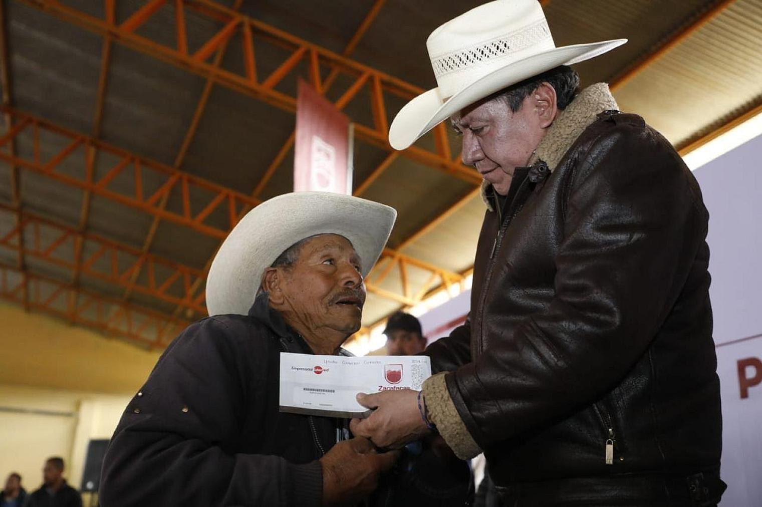 En la comunidad Colonia Progreso, el mandatario estatal entregó un apoyo gubernamental global de 3 millones 352 mil 500 pesos para beneficio de 447 productores (376 hombres y 71 mujeres) de los municipios de Cañitas de Felipe Pescador, General Francisco R. Murguía, Juan Aldama, Río Grande y Sain Alto.