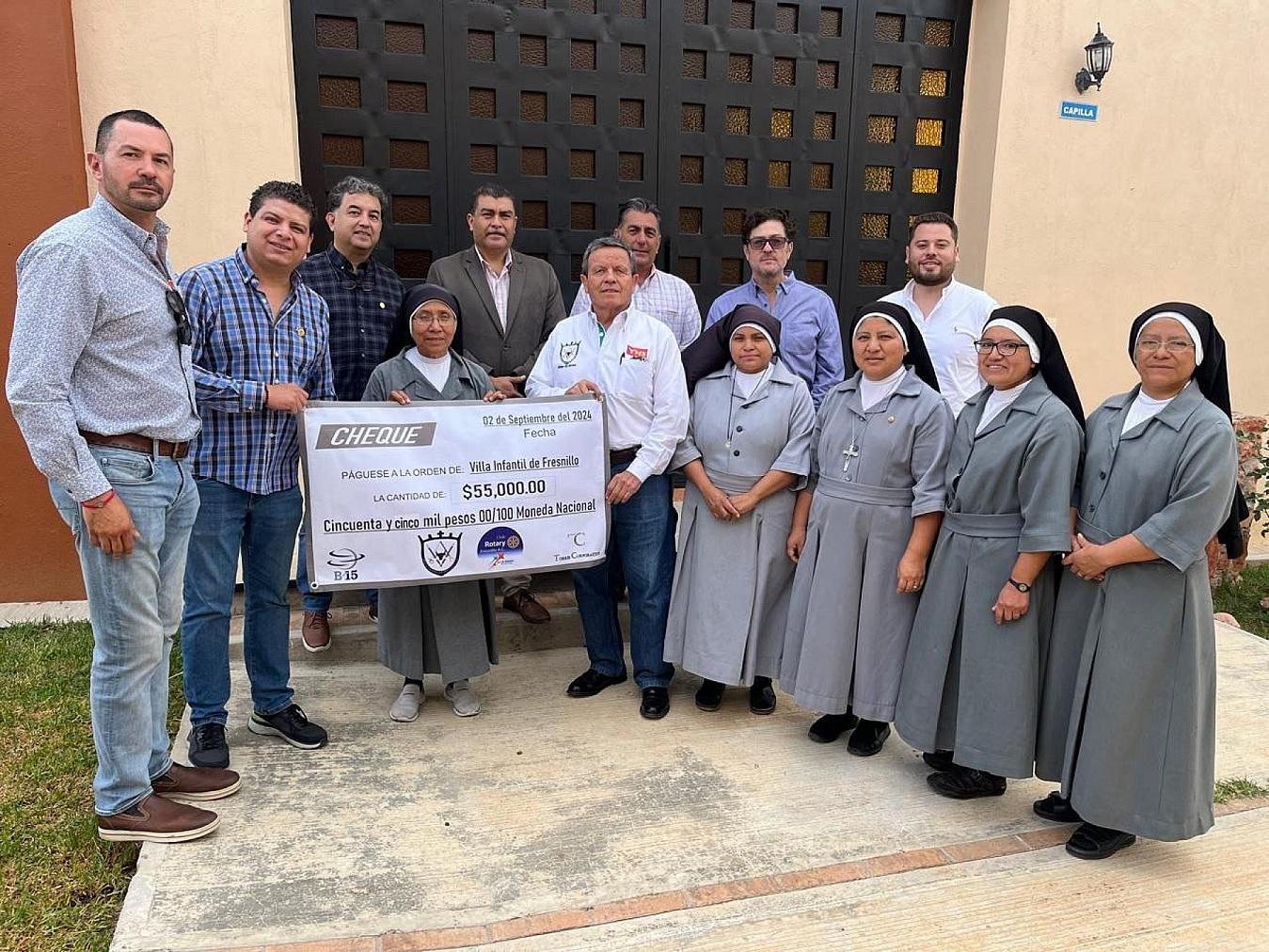 FRESNILLO, ZAC.- Los integrantes de la Peña Taurina y el Club Rotario entregaron 55 mil pesos a la Villa Infantil Sagrado Corazón de Jesús, recurso obtenido en la paella realizada durante la celebración del 470 aniversario de la fundación de Fresnillo.