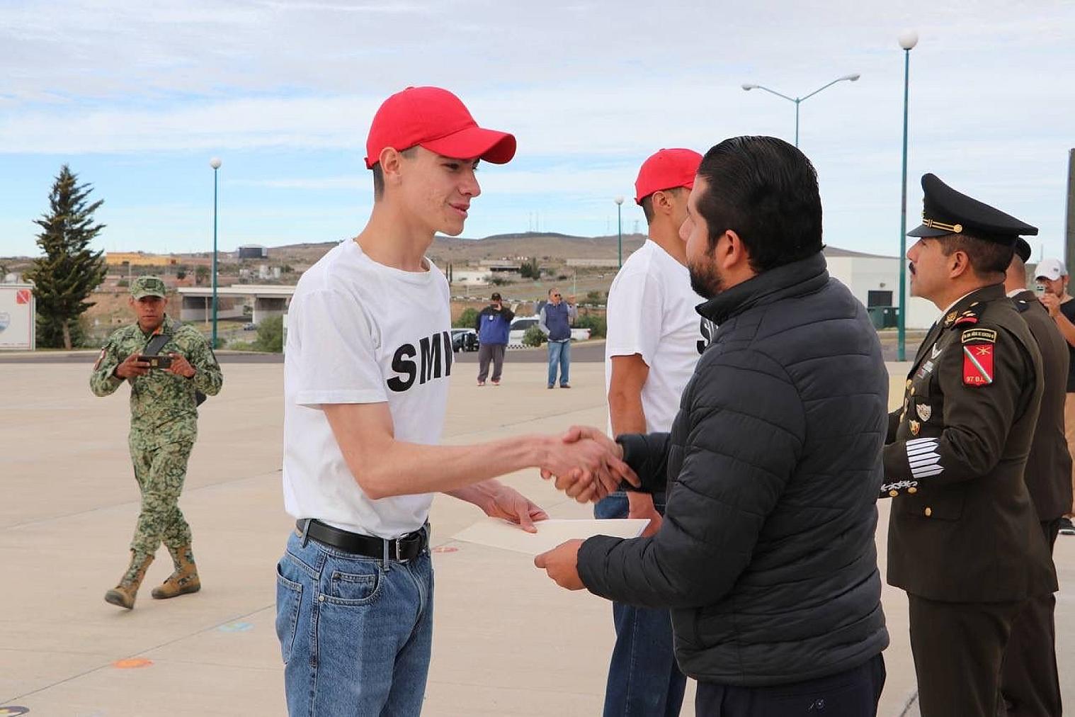 En el evento, los jóvenes Alfredo Daniel González y Fátima Caldera Moreno recibieron su cartilla liberada y reconocimiento, respectivamente, por parte de las autoridades. Posteriormente, cada conscripto recibió su documentación.