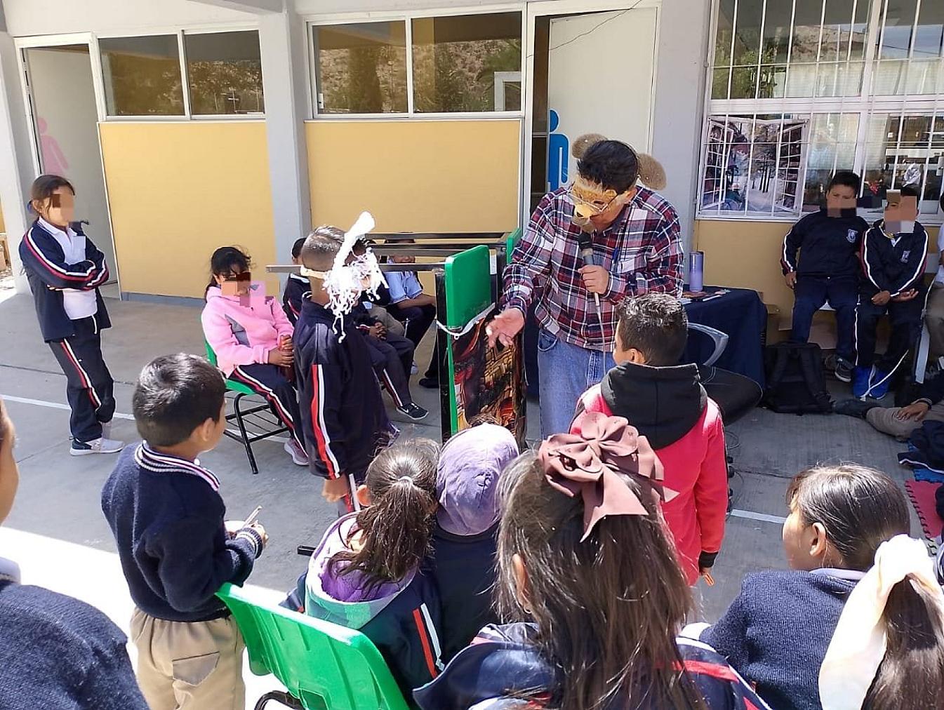 FRESNILLO, ZAC.- Dentro de la cruzada “Con Sentido Humano”, creada e impulsada por la presidenta Rita Rocío Quiñones de Luna, en el mediodía de este jueves la administración municipal llevó otra actividad de cuentos y canciones a la comunidad El Baluarte, en el noroeste de la zona urbana, donde se entregó más de 90 libros para fortalecer la biblioteca escolar de la primaria “Miguel Hidalgo”.