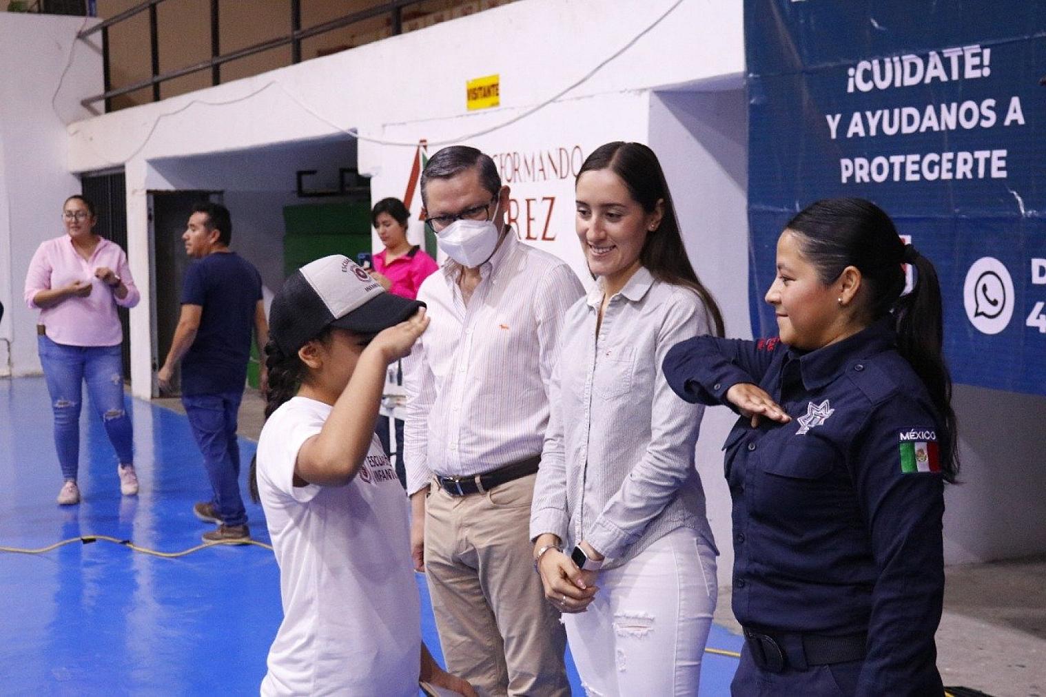 El secretario de Gobierno, Pablo Torres Corpus, en representación del presidente municipal, junto a la regidora comisionada a Atención al Migrante y Asuntos Internacionales, Martha Alamillo Guzmán, la encargada de Prevención del Delito, Ana Cecilia Baltazar Muñoz, entregaron un reconocimiento a los pequeños, así como a los instructores, el comandante de la Policía Turística, Efraín Arnulfo Barrios Gonzales y el oficial, Daniel Herrera Castrejón, quienes hicieron posible que los pequeños recibieran acondicionamiento físico, actividades artísticas y defensa personal.