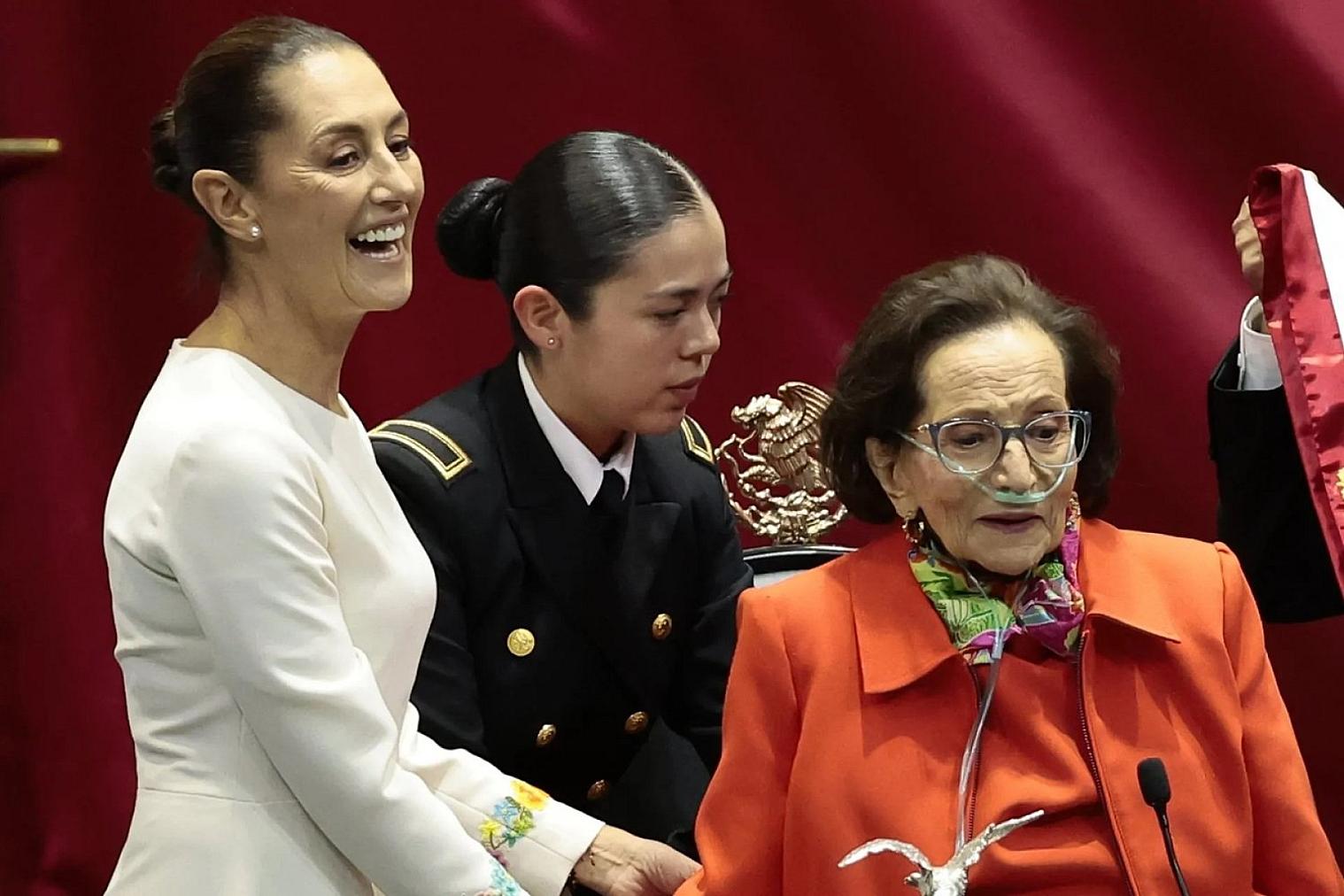 Ifigenia Martínez, figura histórica de la izquierda mexicana, acudió con silla de ruedas y oxígeno a la toma de posesión de Sheinbaum, quien admira tanto a la mujer, que escribió su nombre en la boleta presidencial del 2 de junio para votar por ella de manera simbólica.