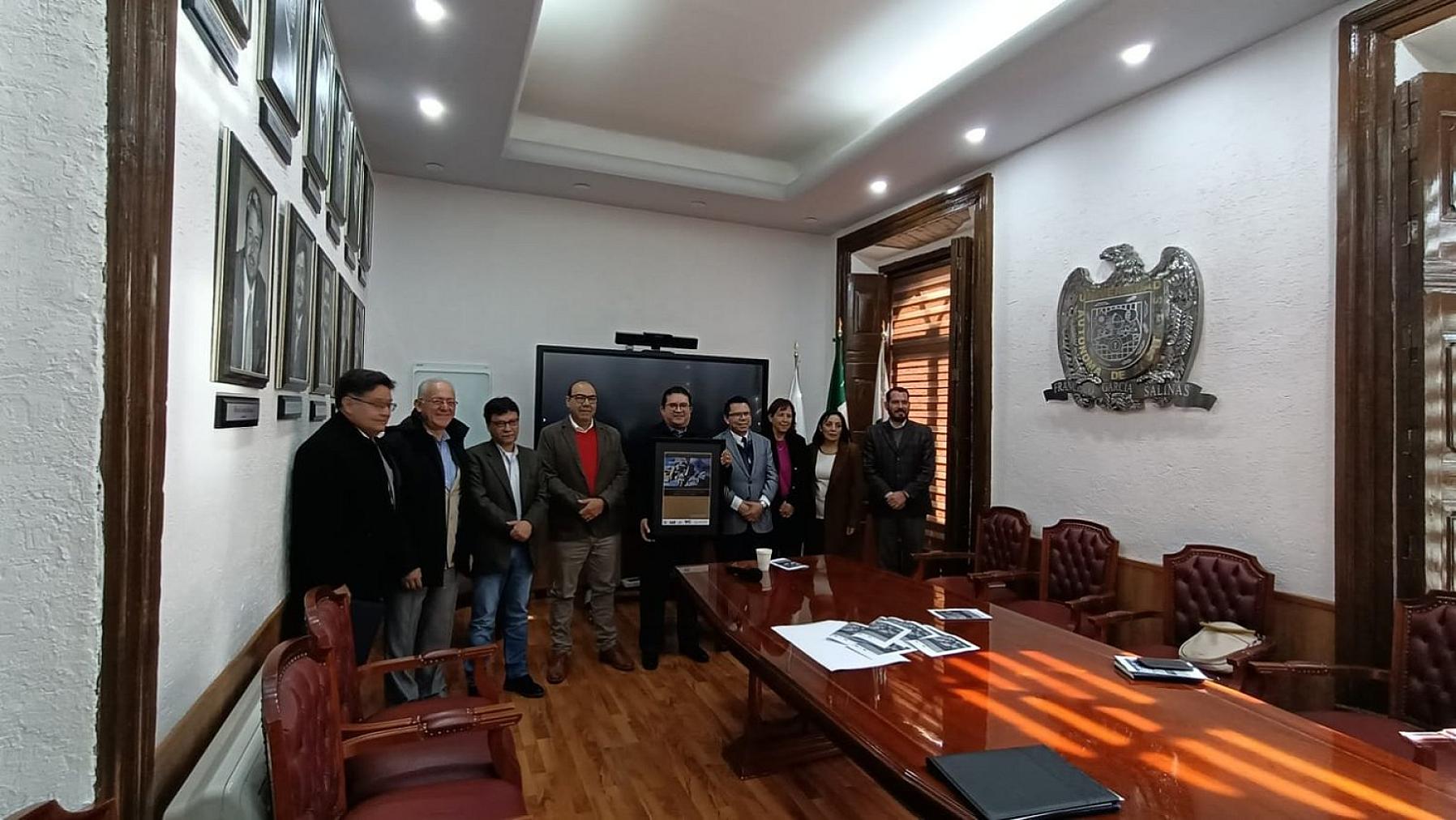 En una conferencia especial, el rector Rubén Ibarra Reyes estableció comunicación con el autor ganador del premio dedicado al bardo jerezano, a quien vía telefónica Santiago Matías se refirió como “una de nuestras catedrales de la poesía”.