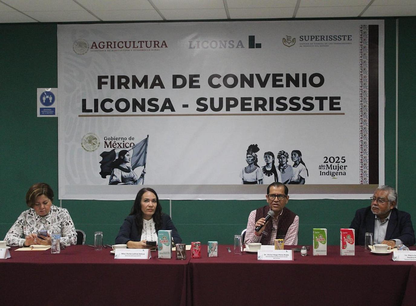 El acuerdo fue firmado por la directora de SuperISSSTE, Dunia Ludlow Deloya, y el gerente nacional de Abasto Social de Liconsa, Víctor Hugo Pérez Rojas, en las instalaciones de esta compañía paraestatal, ubicada en la Alcaldía Tláhuac de la Ciudad de México.