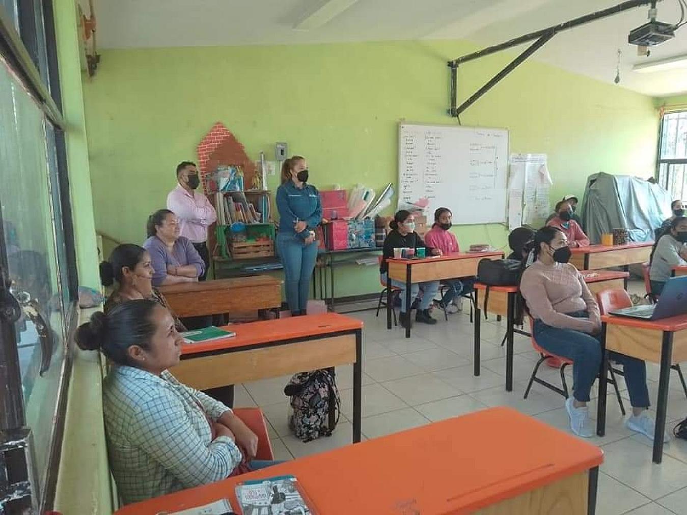 Actividad a cargo de Selina Juárez, Coordinadora de Salud Reproductiva de la Jurisdicción IV del municipio, en la Escuela Primaria "Constituyentes de 1917" en la comunidad de Ignacio Zaragoza II, mejor conocida como La Rastrera.
