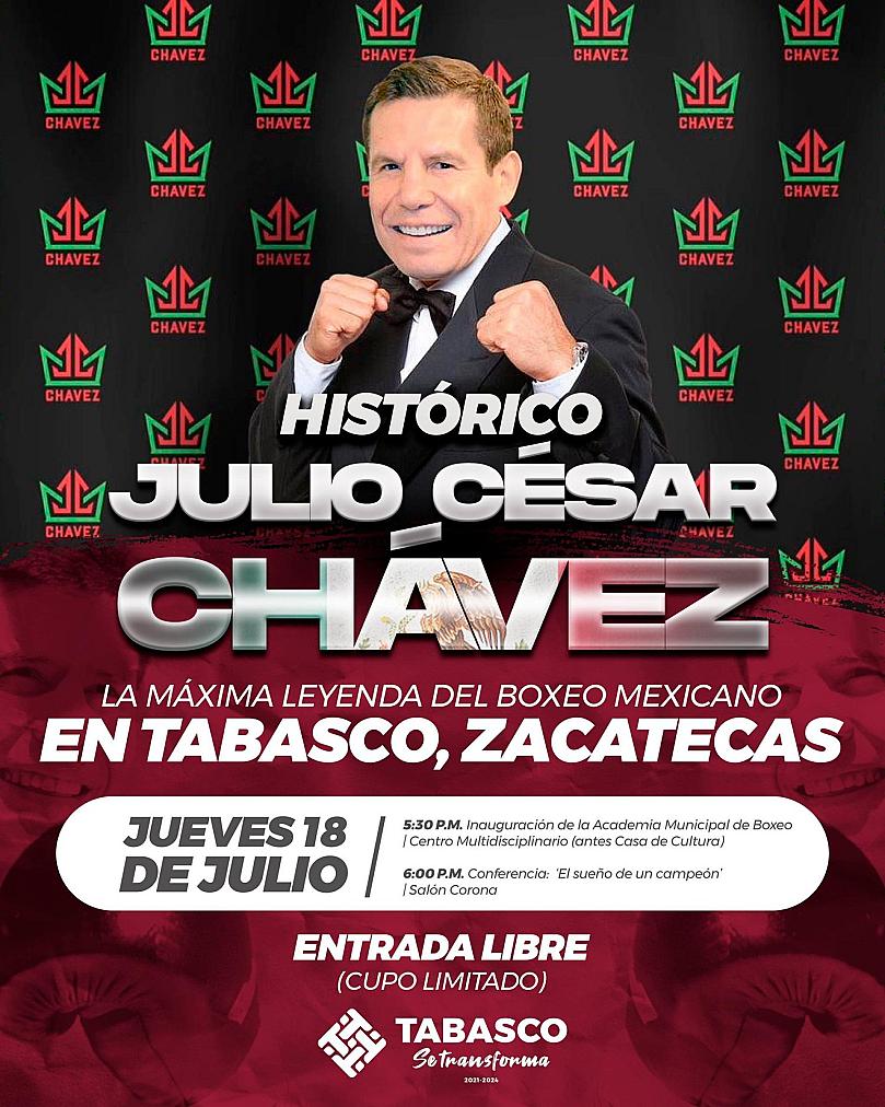 INAUGURARÁ JULIO CÉSAR CHÁVEZ ACADEMIA DE BOXEO EN TABASCO