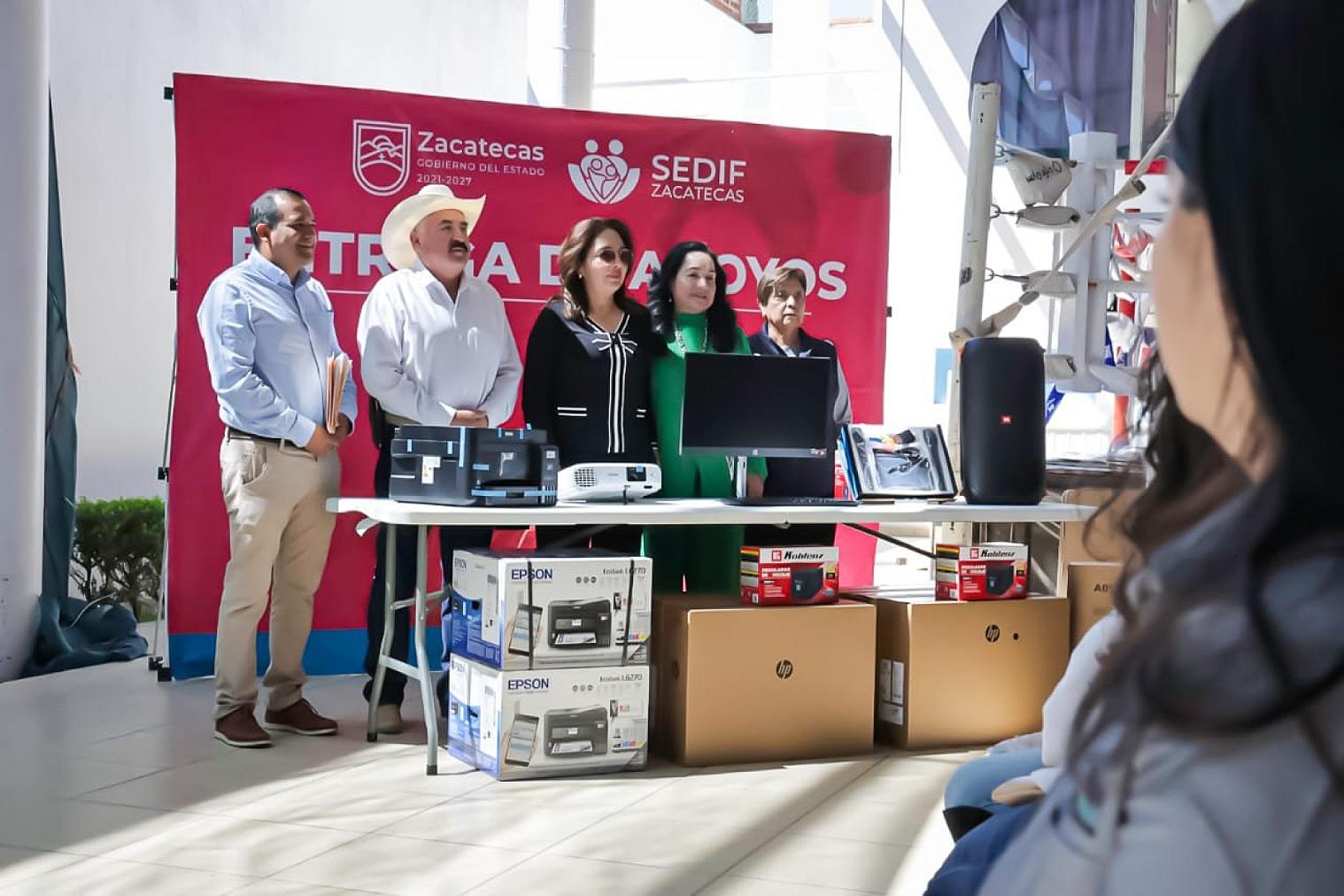 FRESNILLO, ZAC.- Con una inversión superior a 1 millón 263 mil pesos, en beneficio de la comunidad, la presidenta honorífica del Sistema Estatal para el Desarrollo Integral de la Familia (SEDIF), Sara Hernández, entregó equipamiento para el Centro Pilares en la cabecera municipal de Nochistlán, así como para dos Centros Pilares en Fresnillo.