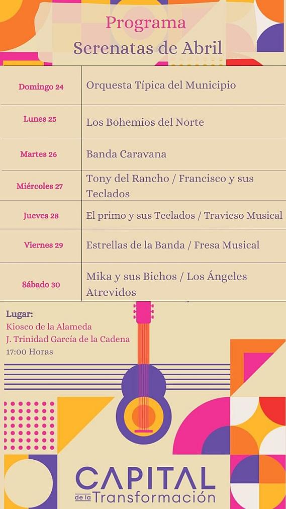 INVITA AYUNTAMIENTO CAPITALINO A SERENATAS DE ABRIL EN LA ALAMEDA