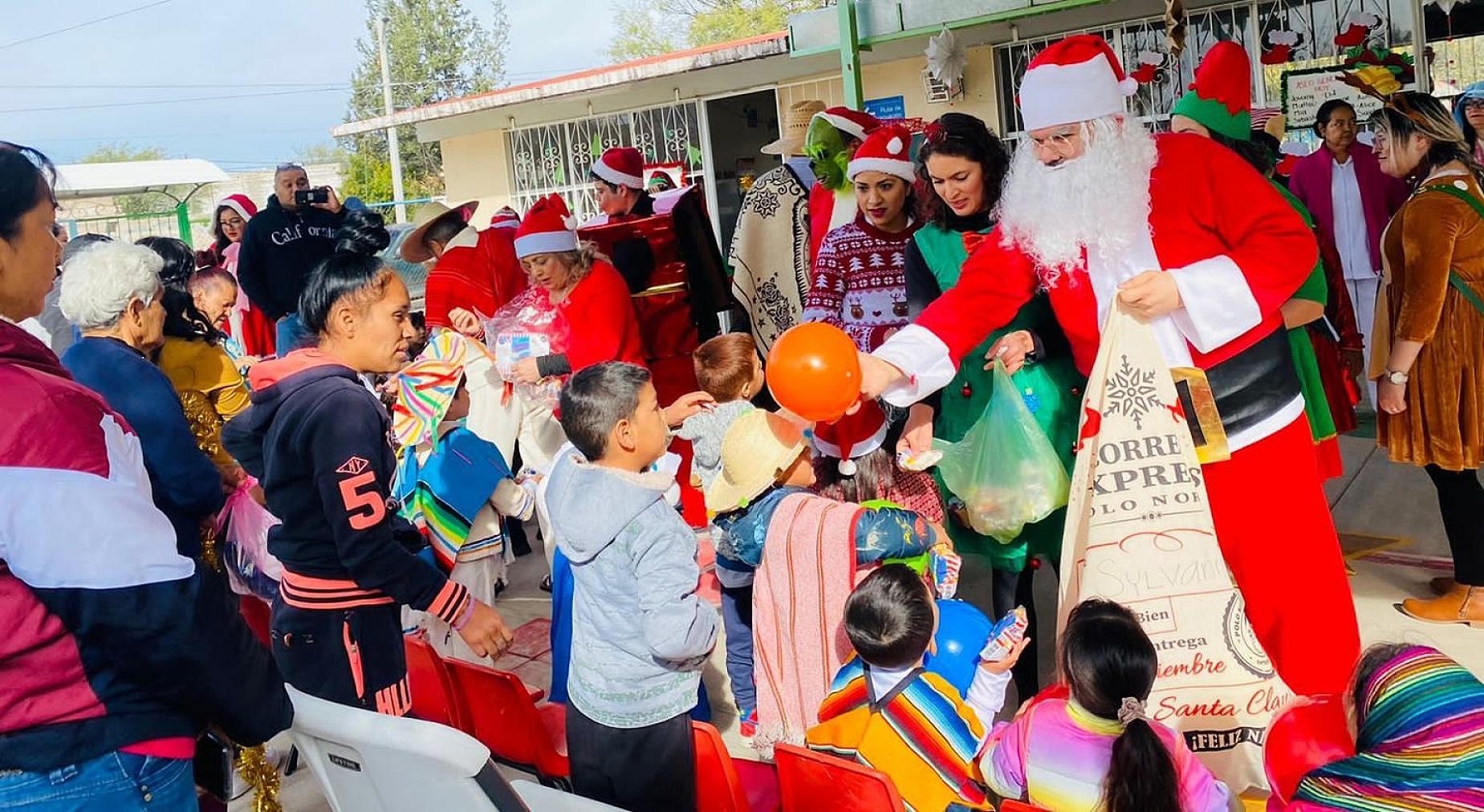 JEREZ, ZAC.- Juegos, piñatas, golosinas y regalos fueron parte de las actividades que disfrutaron en pasados días los cerca de 300 niños y adolescentes, en la caravana navideña que la Unidad de Medicina Familiar Del Instituto de Seguridad y Servicios Sociales de los Trabajadores del Estado (ISSSTE) Jerez, realizó en centros preescolares y primarias.