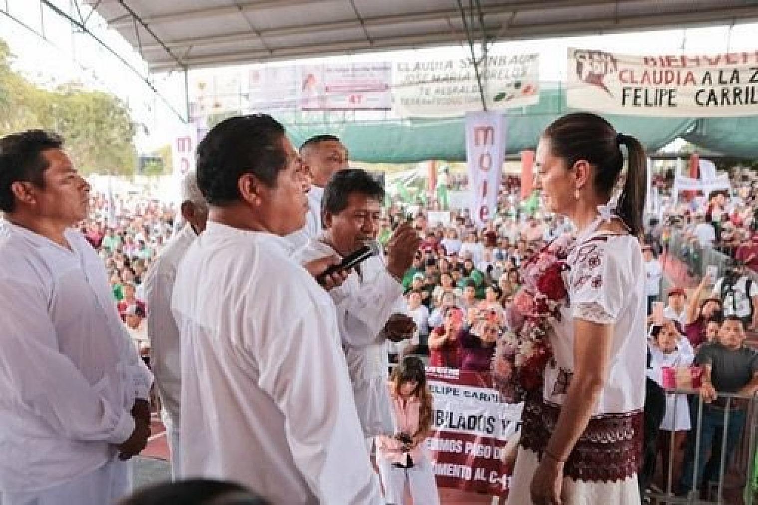 QUINTANA ROO.- Los representantes de los pueblos mayas en Quintana Roo, realizaron el nombramiento de “Hermana Mayor” a la candidata de “Sigamos Haciendo Historia” (Morena, PT y PVEM) a la Presidencia de la República, Claudia Sheinbaum Pardo, durante un encuentro con los habitantes del municipio de Felipe Carrillo Puerto, donde hizo un llamado a defender la 4T.