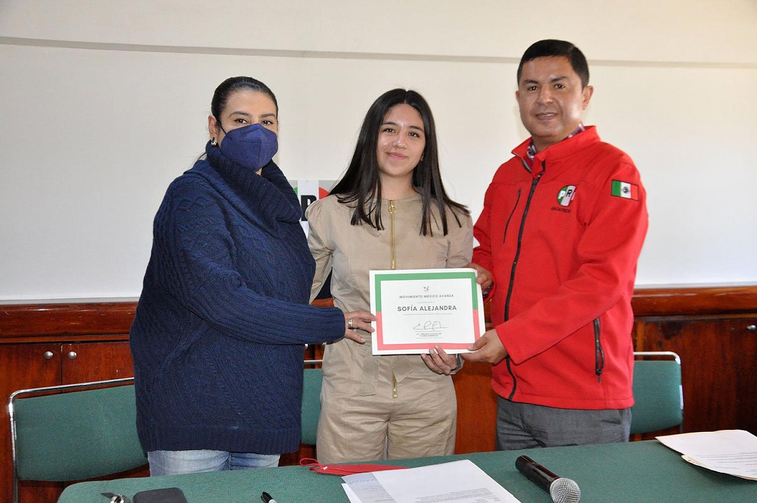 ZACATECAS, ZAC.- La dirigencia del Comité Directivo Estatal (CDE) del Partido Revolucionario Institucional (PRI) encabezada por Enrique Flores Mendoza y por la secretaria General, Araceli Guerrero Esquivel, entregaron los respectivos nombramientos a Sofía Alejandra González Romo, como presidenta del Movimiento México Avanza y a los integrantes de la estructura de esta organización adherente al PRI.