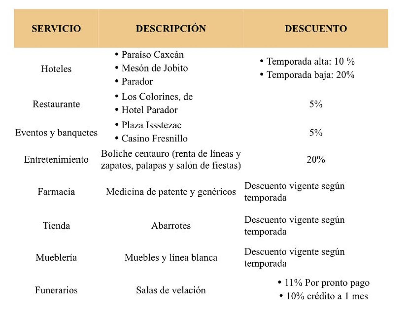 Se trata de una estrategia mediante la que se busca ampliar la oferta de prestaciones a las que pueden acceder los zacatecanos que laboran en alguna institución federal. Los descuentos van del 5 y hasta el 20 por ciento: