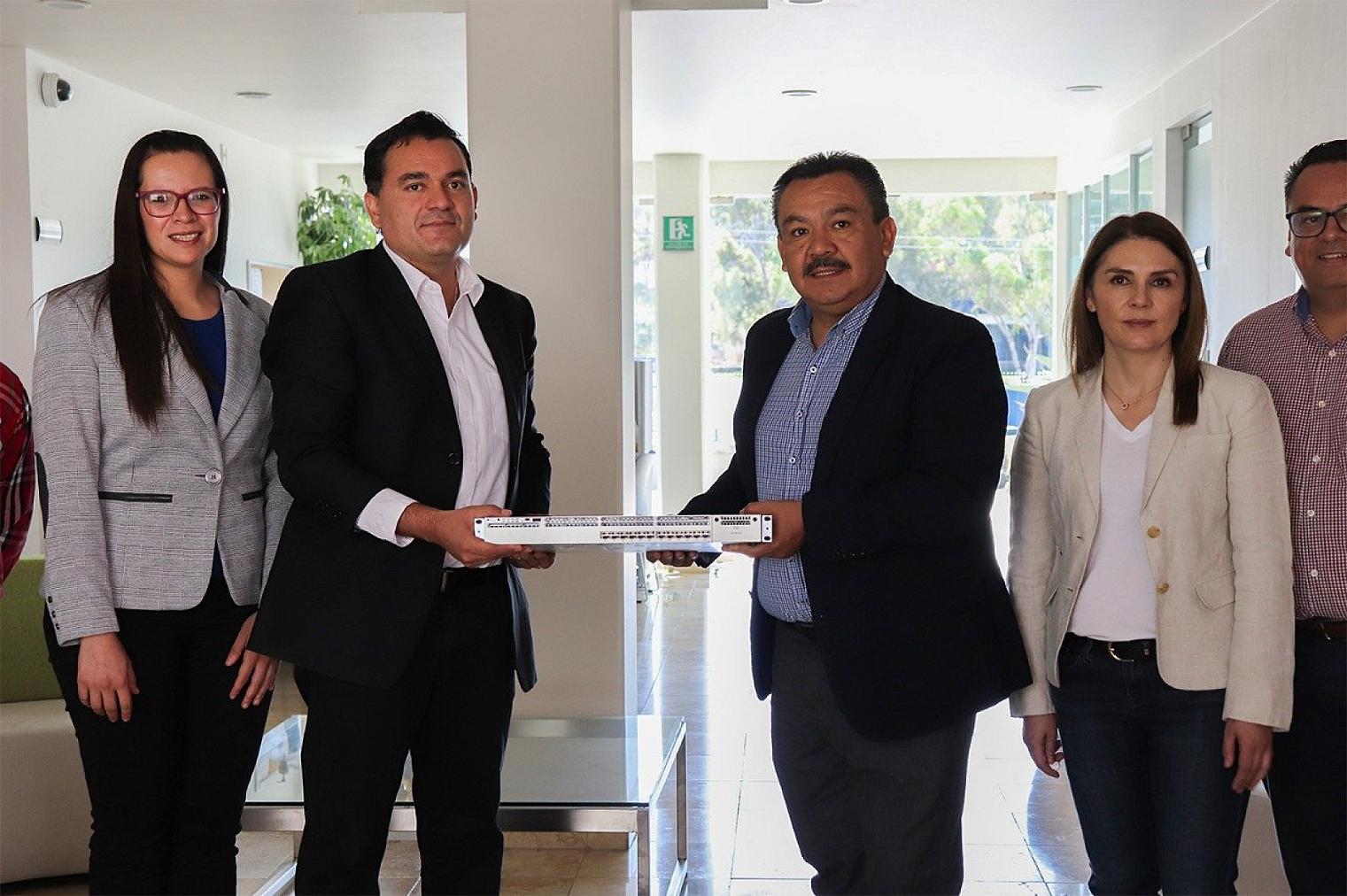 El director General del Consejo Zacatecano de Ciencia, Tecnología e Innovación (Cozcyt), Hamurabi Gamboa Rosales, entregó al Rector de la Utzac, Gonzalo Franco Garduño, un Servidor IBM Blade, un switch Cisco de 48 puertos y varios discos duros, con capacidad total de almacenamiento de 5.5 Terabytes (TB).