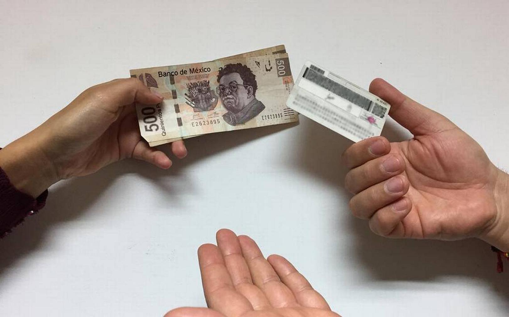 El audio del video deja constancia de que la menor de edad se dirige a alguien de nombre “Tere” y le anuncia que le van a repartir una tarjeta mientras juega con ellas en sus manos, además de que se aprecia que es precisamente la menor quien hace entrega de los plásticos.