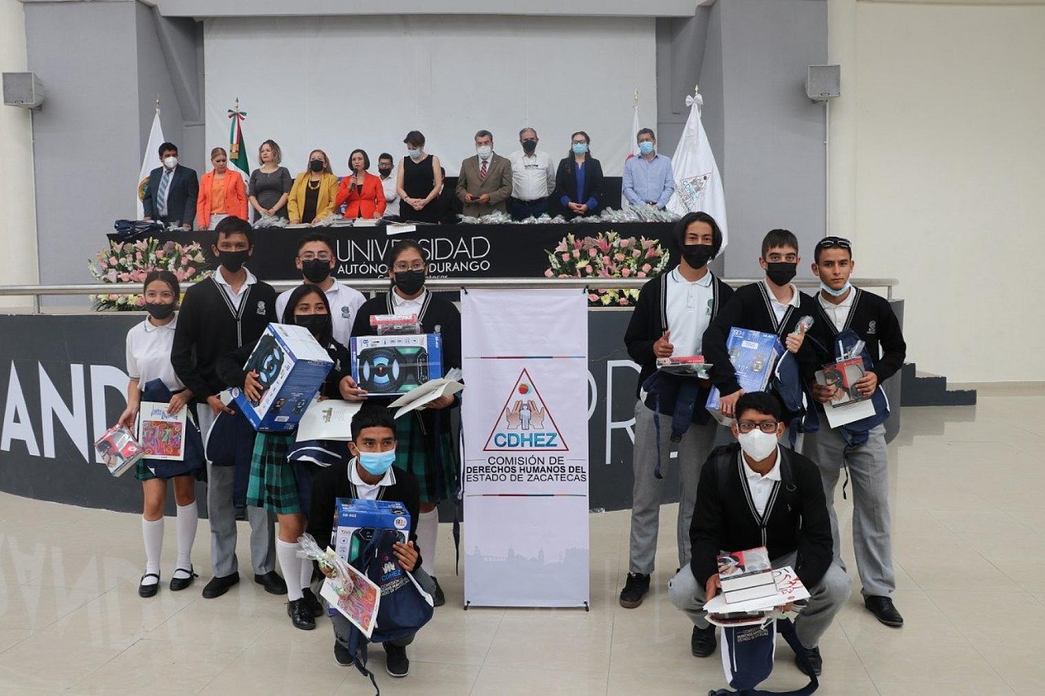 ZACATECAS, ZAC.- La Comisión de Derechos Humanos del Estado de Zacatecas (CDHEZ) entregÓ el Premio Estatal de Promotoras y Promotores Juveniles de Derechos Humanos 2022 a los estudiantes que realizaron acciones de promoción de los derechos humanos durante el ciclo escolar en su salón de clases, escuela y comunidad.