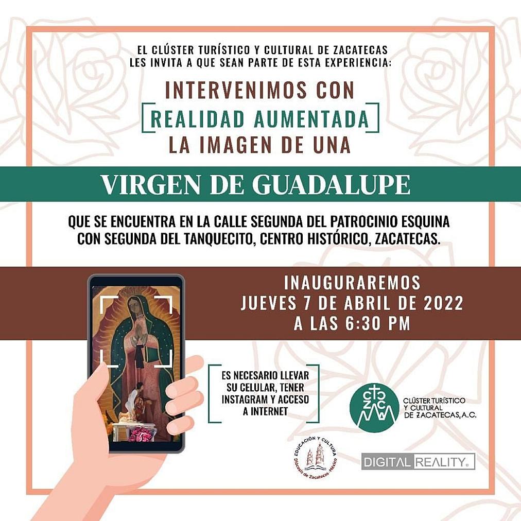 A través de redes sociales informaron que este jueves, 7 de abril, en punto de las 18:30 horas, integrantes del Clúster Turístico y Cultural de Zacatecas, de la mano con el padre Juan Diego Chávez García -coordinador de la Dimensión Diocesana de Educación y Cultura de la Diócesis de Zacatecas-, se instalará la cédula con el código, y se presentará al mismo tiempo -según adelantaron- a los vecinos esta nueva posibilidad de ver a la Virgen con una aplicación tecnológica.