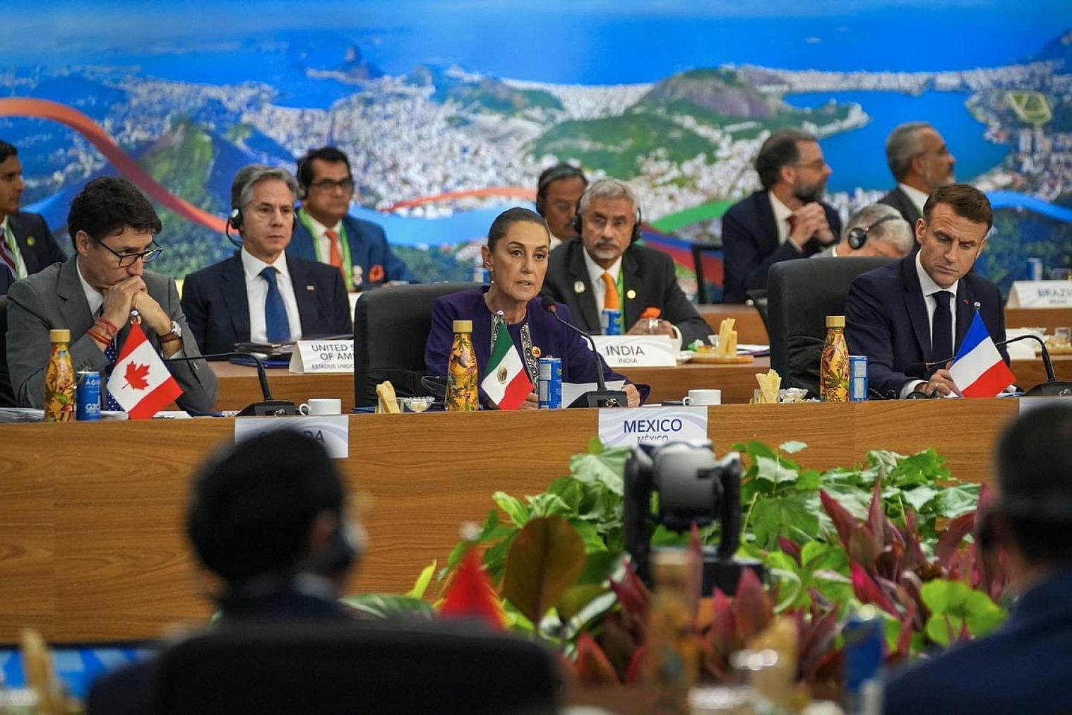 RÍO DE JANEIRO, BRA.- Durante la Cumbre de Líderes del Grupo de los Veinte (G20), la presidenta de México, Claudia Sheinbaum Pardo, propuso sembrar paz y vida, en lugar de guerras, al destinar el 1% del gasto militar para poner en marcha el programa de reforestación más grande de la historia.
