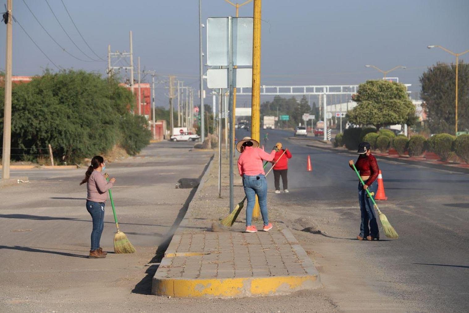 FRESNILLO, ZAC.- Con el objetivo de darle continuidad a las acciones de limpia en El Mineral, este viernes, funcionarios municipales participaron en la brigada de limpieza que se realizó en la carretera a Valparaíso, a la altura del Hospital de la Mujer de Fresnillo, para intervenir el área y darle mantenimiento a la pintura, así como a las áreas verdes.