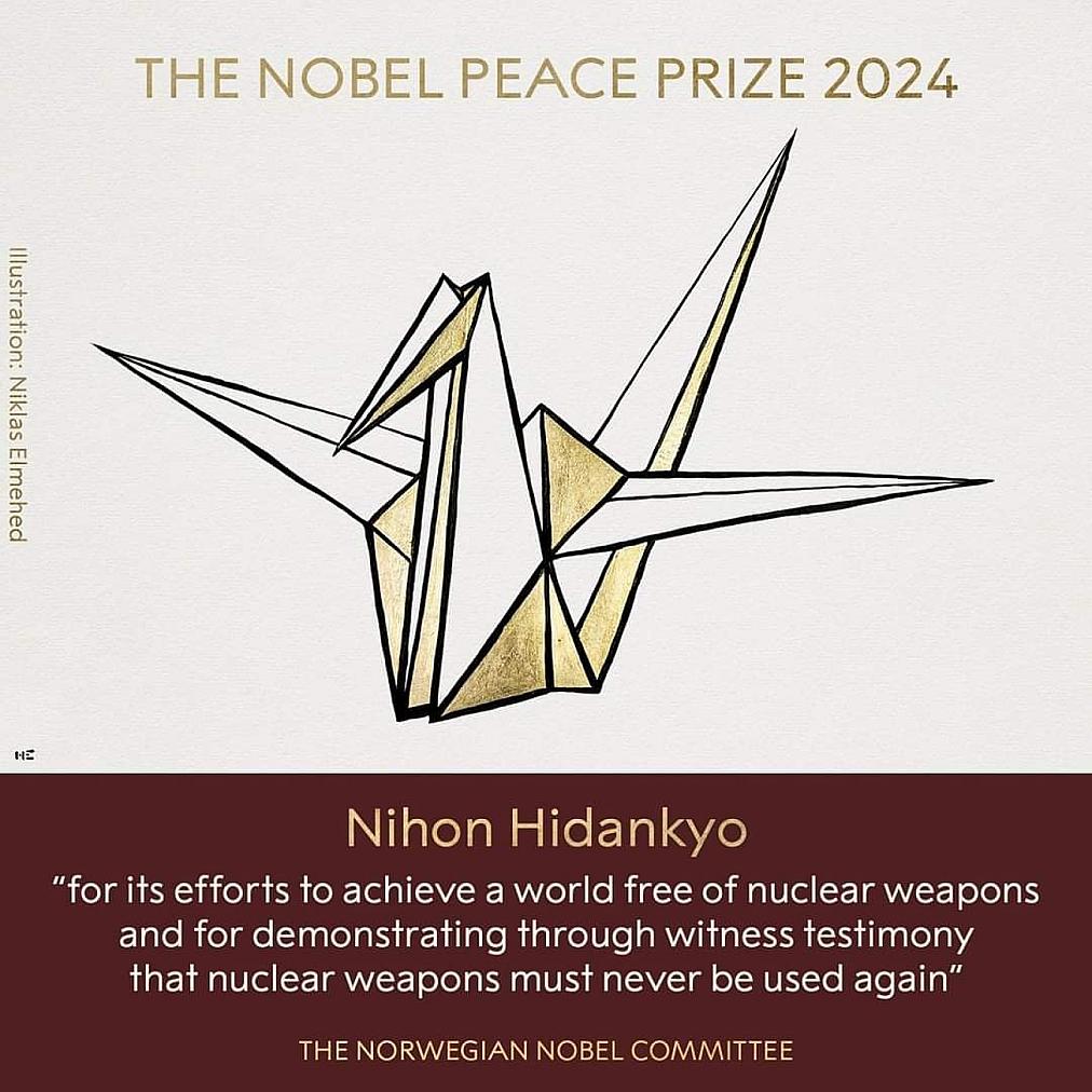 La noticia fue dada a conocer este viernes por el comité noruego The Norwegian Nobel Committee, quienes expusieron que la decisión fue tomada debido a sus esfuerzos en favor de un mundo libre de bombas nucleares "por demostrar, a través de testimonios de testigos, que las armas nucleares nunca deben volver a ser utilizadas".