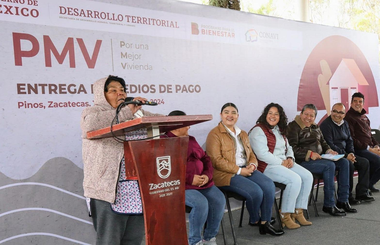 PINOS, ZAC.- Gracias a la coordinación de los Gobiernos de México y Zacatecas y con una inversión de 14 millones de pesos, 400 familias del municipio de Pinos recibieron los apoyos del programa Por una Mejor Vivienda de manos de autoridades federales, así como del gobernador David Monreal Ávila.