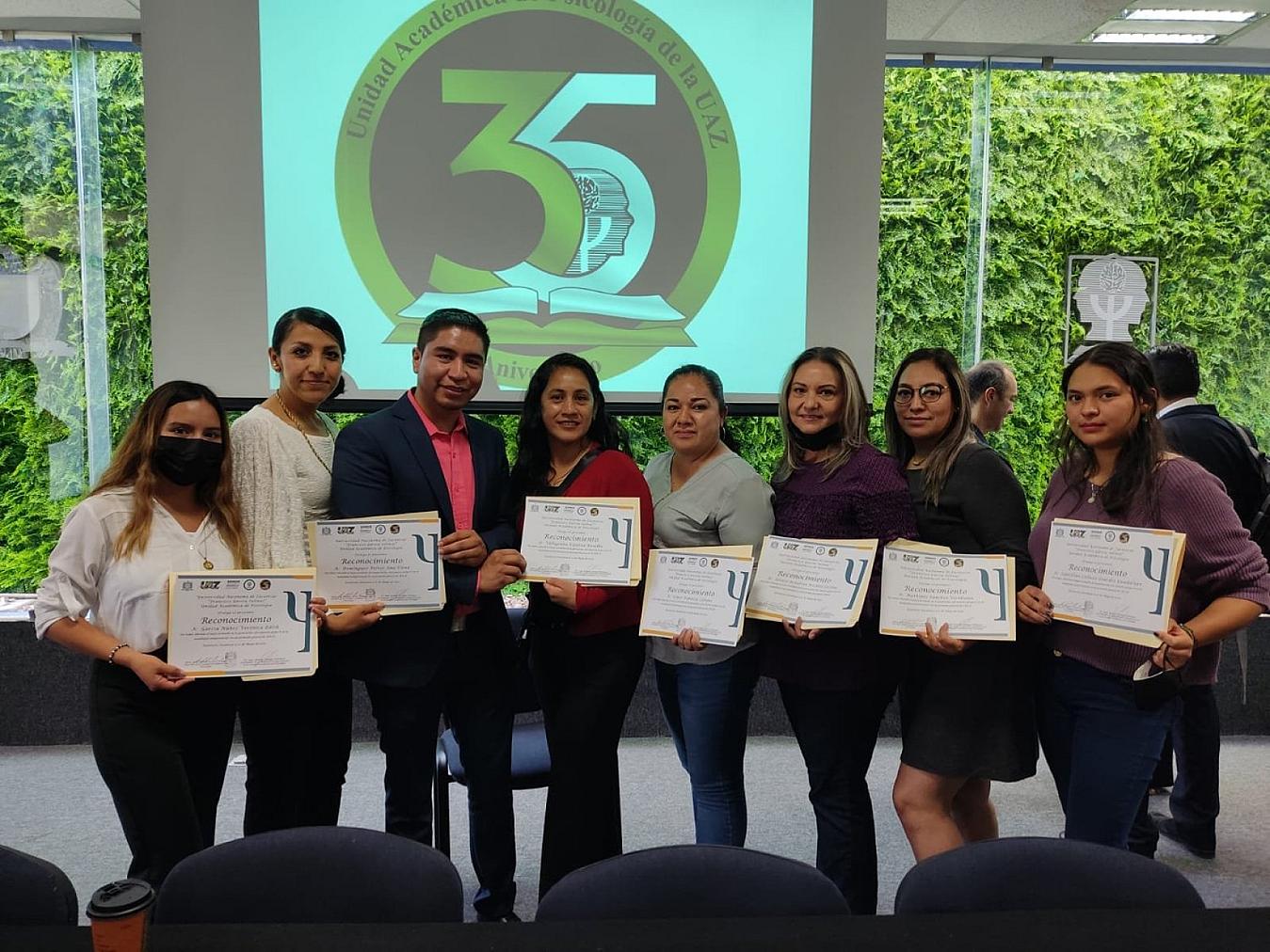 ZACATECAS, ZAC.- Autoridades universitarias de la Unidad Académica de Psicología (UAP), reconocieron a 30 de sus alumnos de la Licenciatura en Psicología, por ser los mejores promedios de la modalidad semipresencial, ello en el marco de la conmemoración del Día de Estudiante.